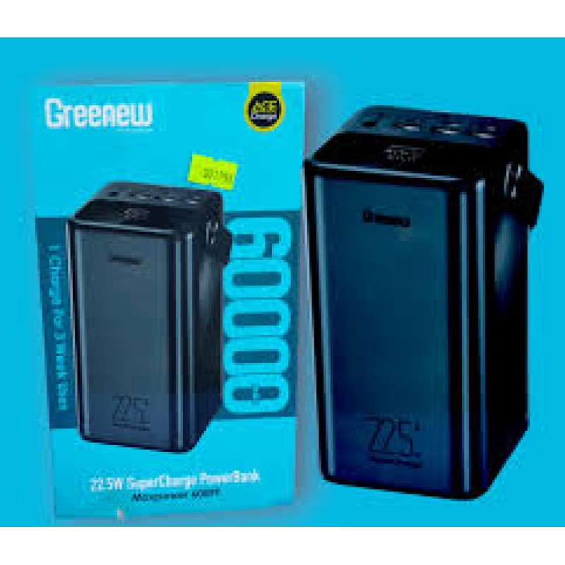 The itel Greenew 22.5W Super Charge Powerbank (60,000mAh) is a powerhouse designed for serious mobile energy needs. Here's what makes it stand out: